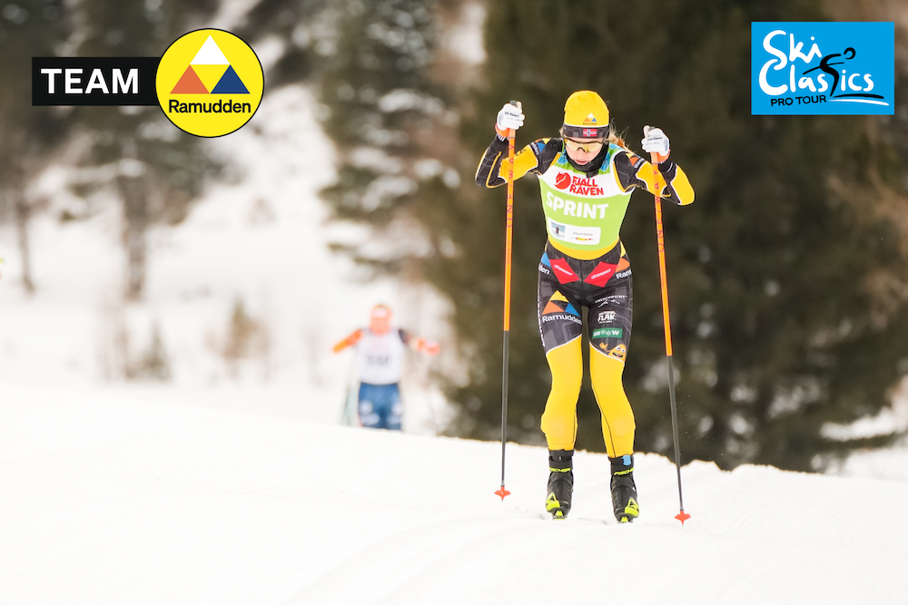 When we look at the Visma Ski Classics general classification, after this weekend, the yellow Champion Bib Competition still belongs to Ida Dahl, Team Ramudden, and Andreas Nygaard, Team Ragde Charge.